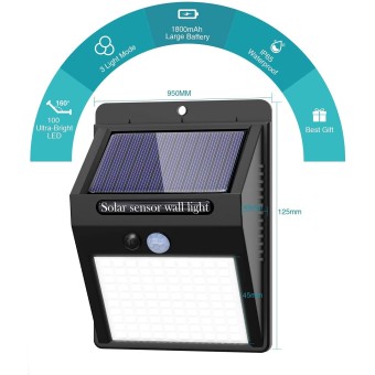 About this item ?[Ultra-Bright Solar Lights]: Wider Illumination Coverage;Equipped with 100 leds,Kolpop solar motion lights outdoor offers a larger coverage of luminosity, which can illuminate space about 30㎡ at night.A sufficient 4-piece package can illuminate your front door, backyard, garage, deck, garden,fence,etc. ?[3 Considerate Modes]: Kolpop solar motion sensor lights..