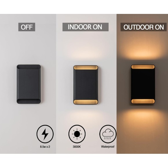 - 【Square Up and Down Wall Light】Commercial residential outdoor porch light with 2 led light sources which has simple lines and black matte a stylish look, in the lighting presents a unique lighting effect, is ideal for house illumination and decoration of outdoor or indoor places; Outdoor light fixture wall mount can be installed vertically and horizontally.